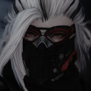 Physical Appearance ––– –Hair: A gradient of light beige to white from root to tip. Fluffy, soft, kept short and semi-tousled. Left to grow out, it becomes a glorious, fluffy mane of hair. They often dye some tips of their hair and ears black.Eyes: Scarlet eyes with slit pupils. More often than not, there's an unnervingly curious glint to them. Often squints under daylight.Height: 1,80m / 6'00'’Build: Robustly built, with strong arms and legs. Loosely hourglass-shaped figure. Often bind their chest. Covered in scars- some are battle scars, some are remnants of their Enshroud, others are self-inflicted, forming legible words and clear symbols, weaving an oath of vengeance on the canvas of their skin. Their arms and legs are warped by the darkness-aspected aether, fading to black at the extremities and are consistently cool to the touch.Distinguishing Marks: Scar under their right eye, red eyeliner and eye shadow. Gnarly scar around their neck. Mechanized, prosthetic left arm, easy to overlook when they're fully armored.Common Accessories: (While on the job) Dark iron helmet and red hood, clawed gauntlets. Red-tinted goggles. (Off-duty) Round glasses with red or black tinted lens. Red jewelry or flowers worn in their hair. Scarves or ribbons worn around their neck.